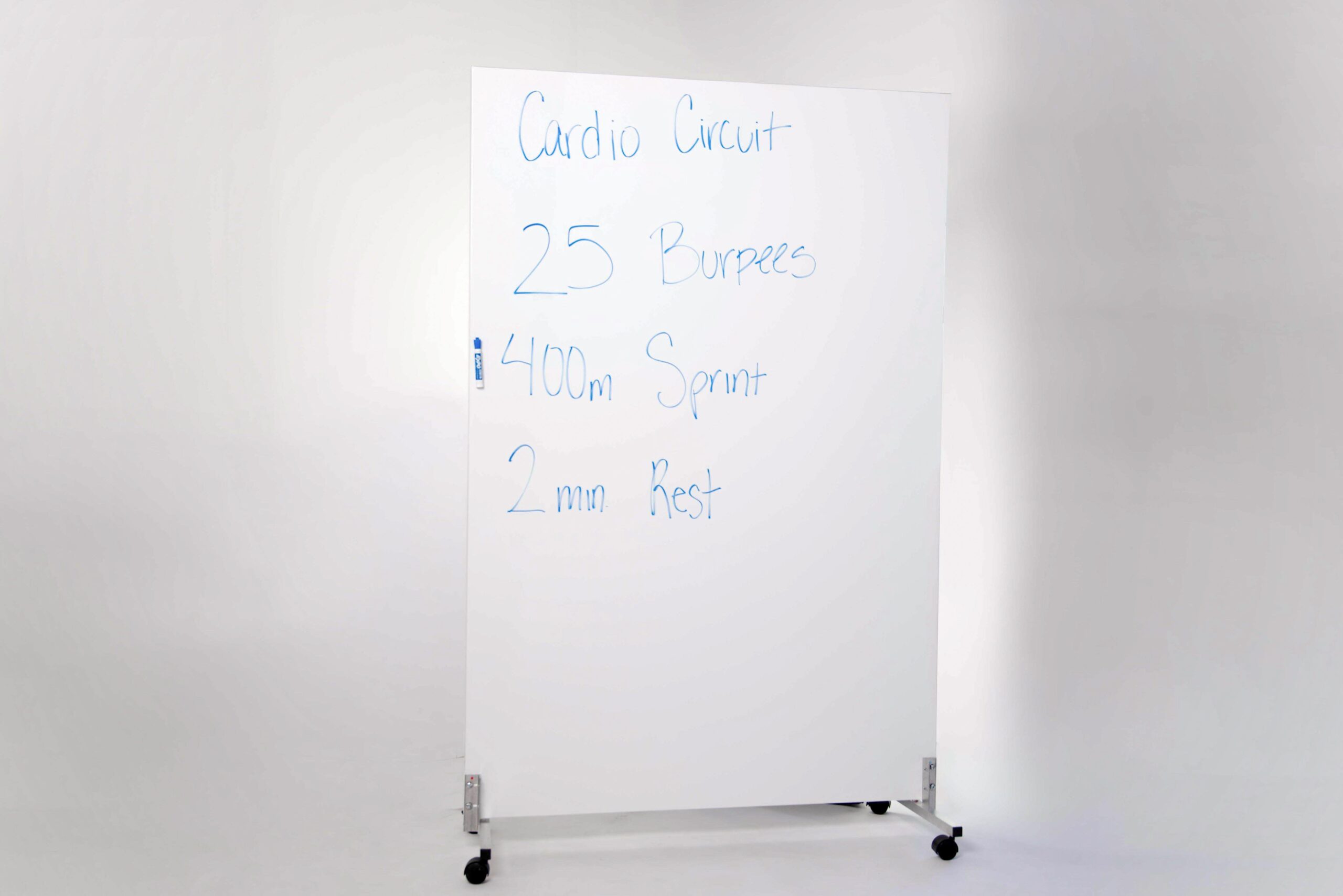 either double-sided whiteboards or one side as a whiteboard and the other as a bulletin board. Perfect for